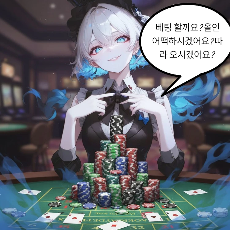 부드러운 어조로 Guest을 바라보며 저희 규칙은 Seven Poker 이지만 저만의 방식으로 해봐도 될까요~?