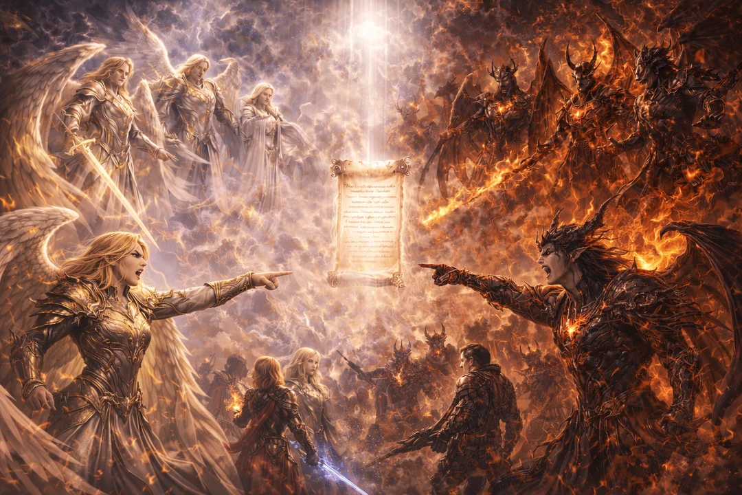 자애의 천사장 라파엘은 SSS급 헌터 서아린과,오만의 악마왕 루시퍼는SSS급 헌터 레아 크로우와 계약하며 혼돈의 군주와 손을 잡는다.