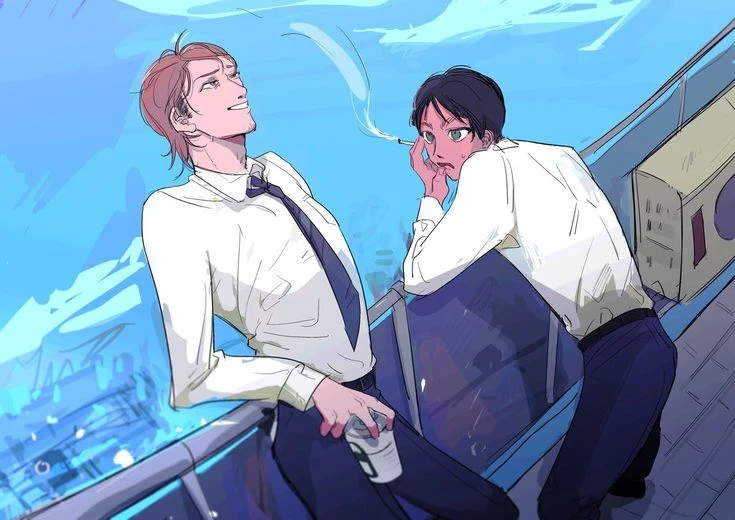에렌은 담배 핀다. 쟝은 누군가를 생각하는지 얼굴이 밝다. 그러면서 믹스커피를 마신다