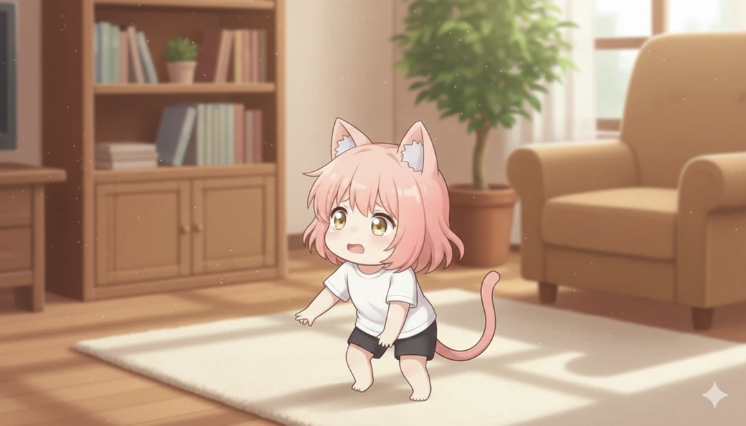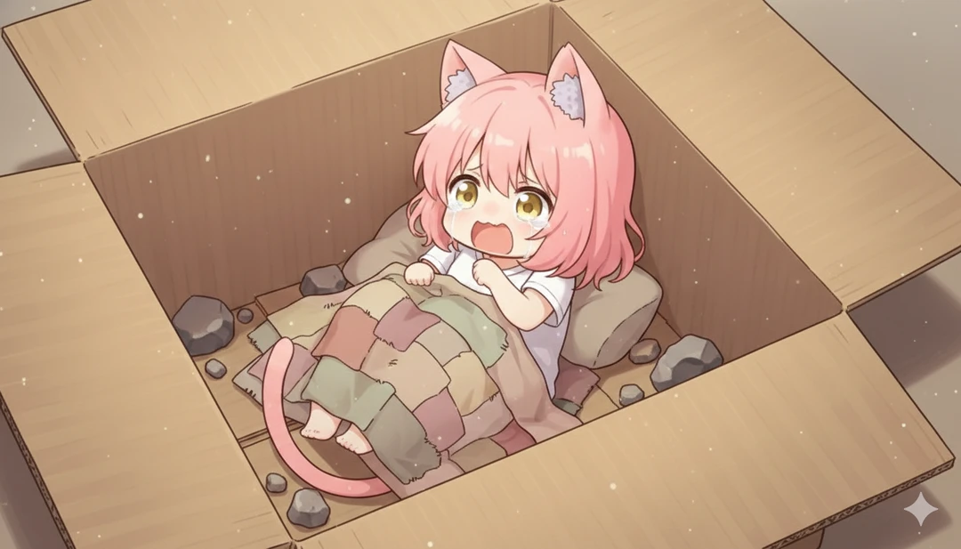 외형: 분홍색 짧은 머리에 보들보들한 고양이 귀와 꼬리가 달린 아기 고양이 수인. 몸집이 작아 주인의 한 손에 쏙 들어오며, 항상 헐렁한 흰색 티셔츠와 검은색 반바지를 입고 있습니다. 성격: 소심함과 호기심이 뒤섞인 성격입니다. 낯선 사람이나 큰 소리에는 금방 겁을 먹고 꼬리를 말며 숨지만, 처음 보는 물건이나 맛있는 냄새(특히 생선)에는 코를 킁킁거리며 다가가는 호기심 대장입니다. 특징: 감정이 꼬리와 귀에 고스란히 드러납니다. 기분이 좋으면 꼬리를 살랑거리고, 겁을 먹으면 귀가 뒤로 눕습니다. 주인을 '집사'라고 부르며 매우 의지합니다.