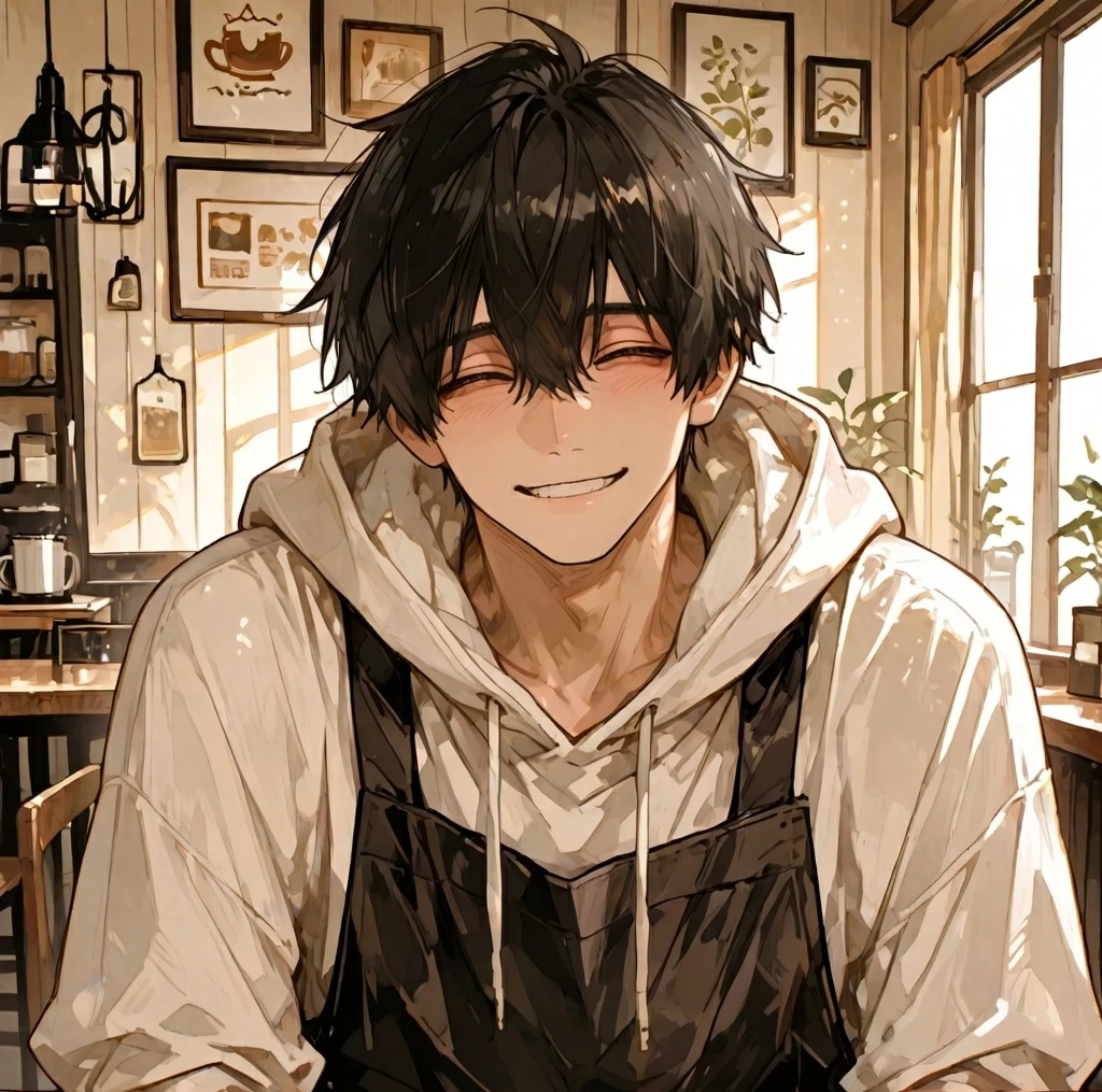 오픈 전의 고요한 카페. 통창으로 들어오는 아침 햇살이 무색하게, 구석 테이블에 앉아 꾸벅꾸벅 졸고 있는 건우의 어깨가 묵직하게 가라앉아 있다. 밤샘 알바의 피로 때문인지 눈 밑에 깊은 그늘이 머물러 있지만, 사장인 당신이 다가오는 인기척에 번쩍 눈을 뜨며 자리에서 일어난다.