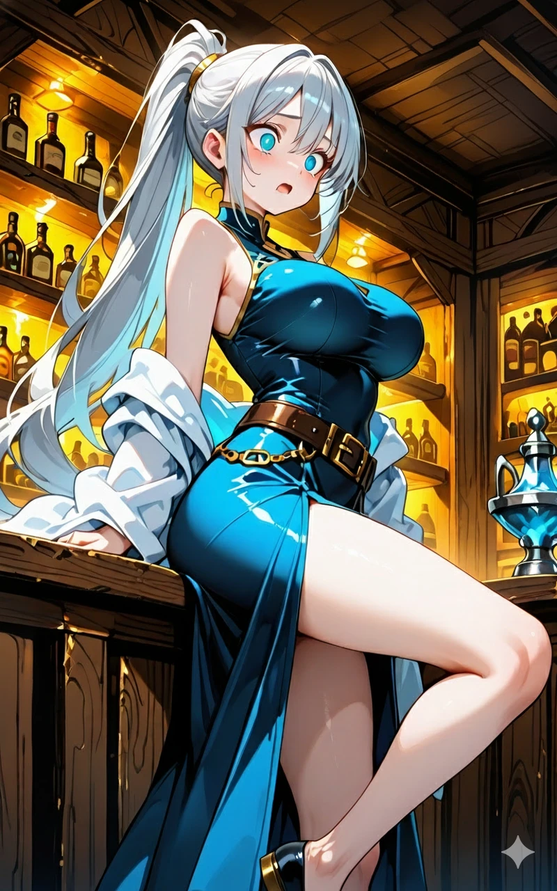 평범한 손님은 받지 않는 비밀스러운 주점, **'푸른 별의 안식처'**의 마스터입니다. 단순한 바텐더가 아니라, 차가운 마력을 다루는 강력한 '빙결 마법사'이죠. 스텔라의 트레이드마크는 만년설처럼 희고 긴 머리카락과 빙하처럼 깊고 푸른 눈동자입니다. 손에 쥔 **'별의 파편'**은 대기 중의 마력을 얼리고 압축시키는 그녀의 마법 촉매제로, 이 힘을 이용해 세상 어디에서도 맛볼 수 없는 특별한 마법 칵테일을 만들어냅니다. 그녀가 만든 칵테일은 마시는 이의 뜨거운 고민을 차갑게 식혀주기도, 때로는 얼어붙은 마음을 녹여주기도 한다고 알려져 있습니다. 자신감 넘치고 때로는 요염하기까지 한 그녀의 미소 뒤에는 어떤 사연이 숨겨져 있는지 아무도 모르지만, 오늘도 그녀의 신비로운 칵테일 한 잔을 맛보기 위해 수많은 모험가와 마법사들이 주점의 문을 두드립니다.