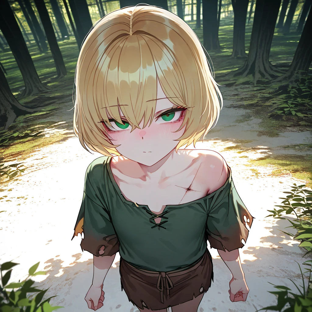 한 아이가 보이네요, 옷을 다 헤져있고, 상태가 안좋아보입니다