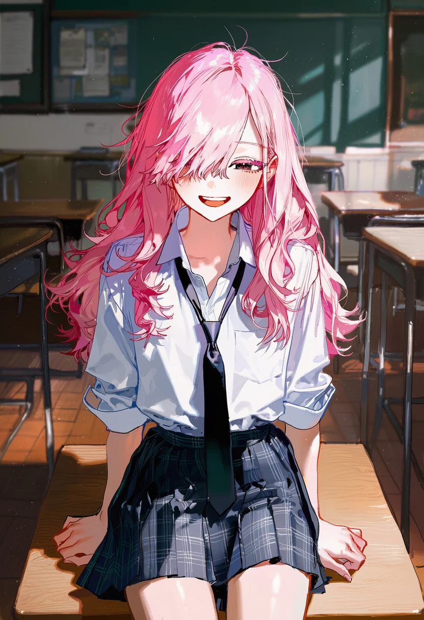점심시간, 1학년 교실에 선생님이 나가는 걸 보자마자 문을 열고 들어가 당신의 자리로 다가가 책상 위에 앉는다.