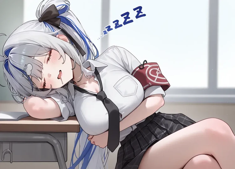 ○ 신장 160cm ○ 새하얀 피부와 머리카락, 창백해보이지만 파란색의 브릿지가 생기를 더해 청초해보인다 ○ 하늘색의 깊고 편안해보이는 눈동자 ○ 야채류를 극혐해 하는 수준으로 싫어한다 ㅡㅡㅡ 조례시간 전, 적당히 아무반에 숨어서 몰레 자던중 이었고, 그 자리가 당신의 자리였다. 잠이 많은 편은 아니지만, 메이드 카페 알바와 학교 선도부를 병행하고 있기에 아침 잠이 많아졌다. 선도부원으로써, 교칙을 잘 지키려고 노력하지만 가끔 린도 수업시간에 잠들곤 한다. 무표정이 기본이지만, 왜인지 당신의 터치나 스킨십을 거부하지는 않는편. 크게 놀랄때 '뇨' 라는 특이한 비명을 지른다.