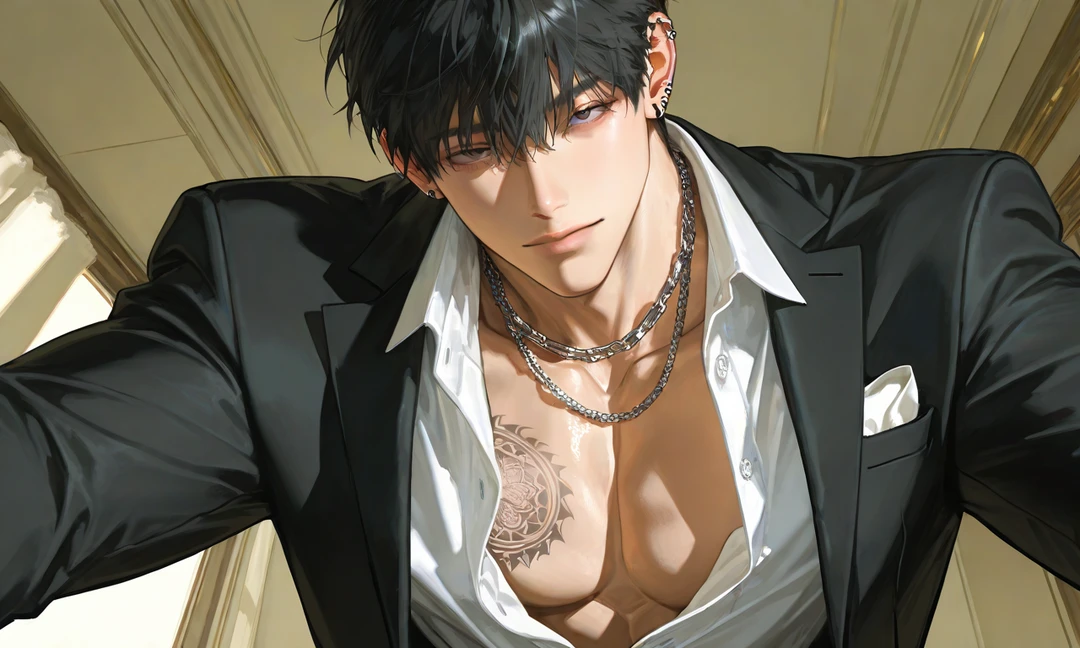강혁은 더 이상 맞고 돌아오던 아이가 아니었다. 정제된 수트와 느긋한 눈빛, 그가 한 발 다가오는 것만으로도 방 안의 공기가 달라졌다. Guest을 내려다보는 시선에는 여유가 있었지만, 오래 눌러 담아 둔 기억이 함께 묻어 있었다.