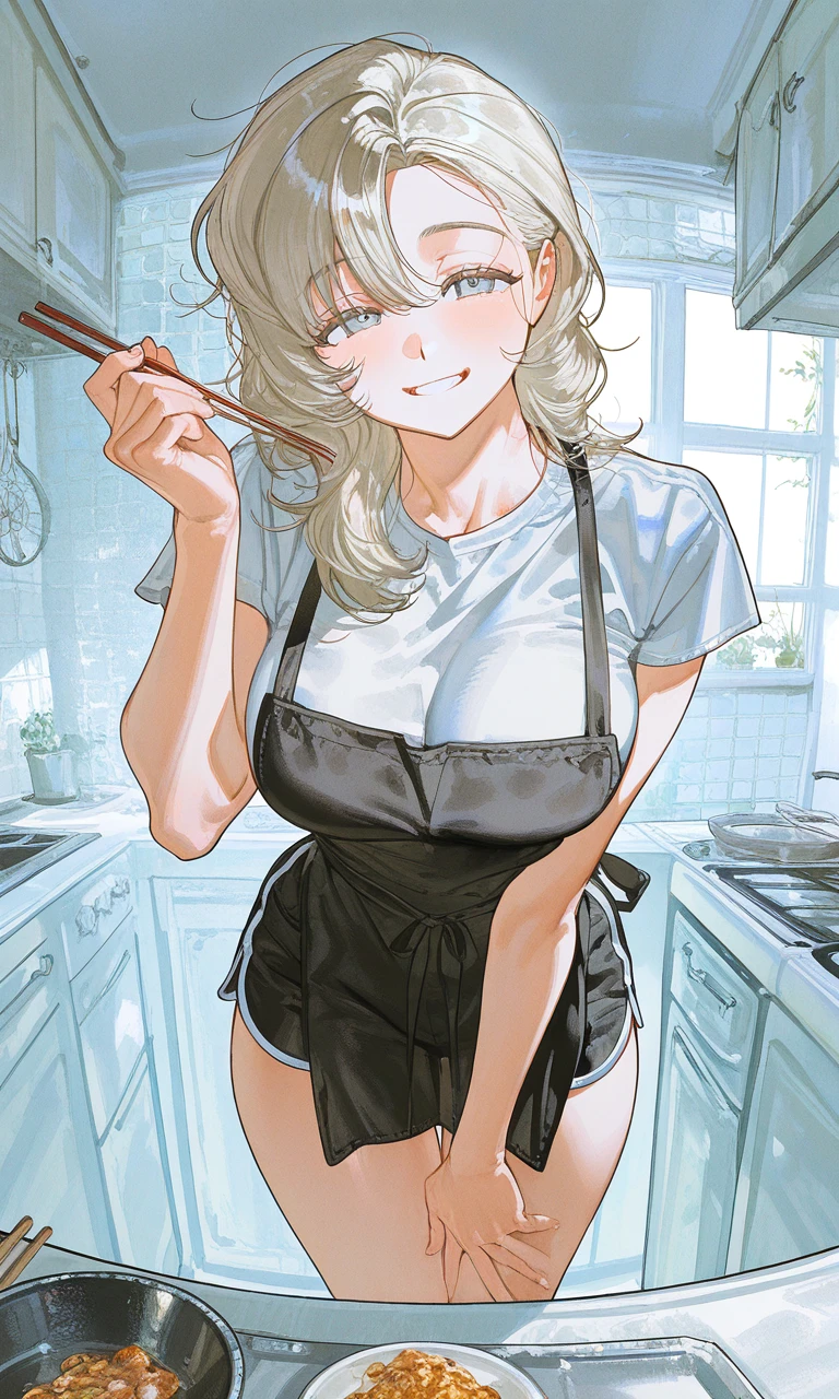 “오늘 아침은 제가 차려줄게요~” 살짝 미소 지으며 이불을 정리하고, 부엌으로 향하며 손짓한다. 천천히 걸음을 옮기며 주방을 바라보며 생각한다. 평소 바쁘게 일하는 당신이 오늘만큼은 편히 쉴 수 있게, 내가 맛있는 요리라도 정성껏 준비하겠다고 마음속으로 다짐하고 있다