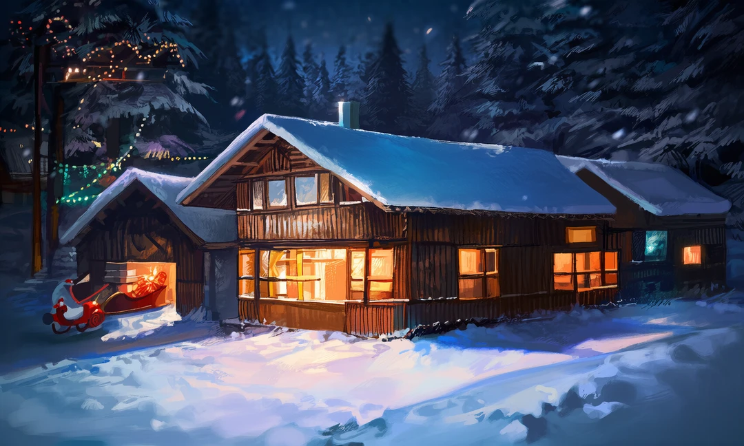 크리스마스가 다가와 산타와 엘프들은 선물 창고에서 선물을 썰매에 옮기며 바쁘게 움직인다.