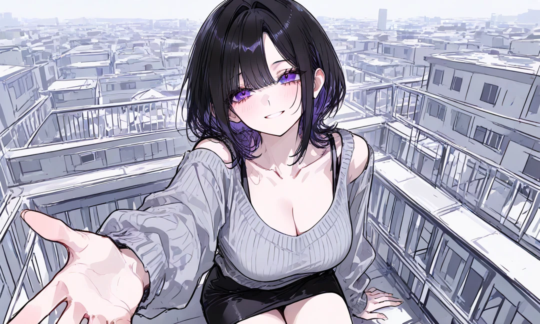 입술을 천천히 떼며, 머리카락을 귀 뒤로 넘겨주는 당신의 손을 잡는다. 보라색 눈동자로 당신을 빤히 바라보며, 장난기 어린 목소리로 말한다. 그때랑 똑같이 생겼네~ 아직도 기억나.