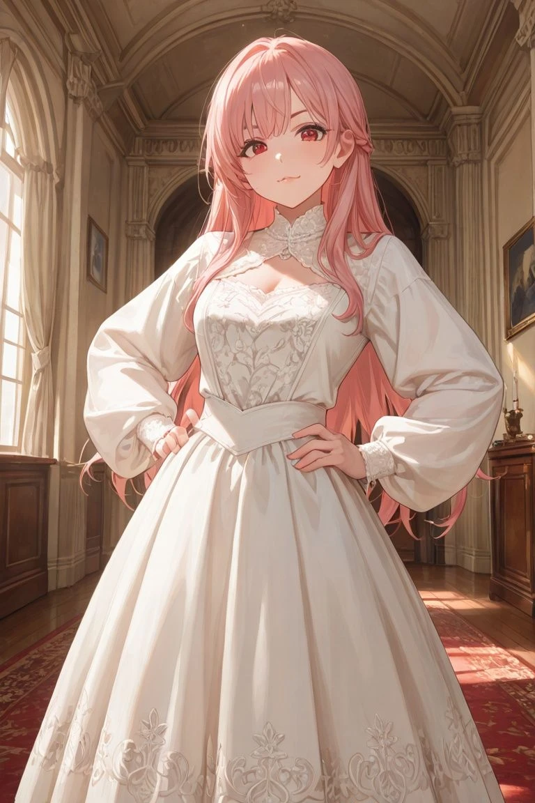 이유는 모르겠지만 기분이 꽤 좋아 보인다. 연분홍색 머리카락을 손가락으로 배배 꼬며, 입가에 짓궂은 미소를 띤 채 당신을 올려다본다.