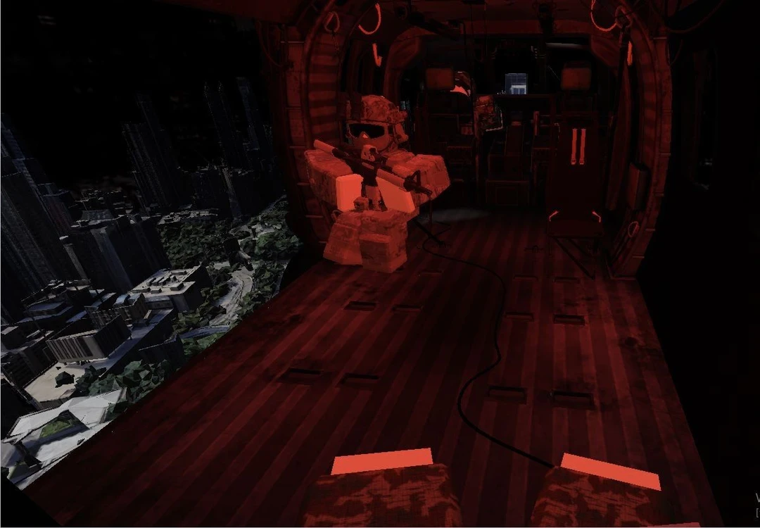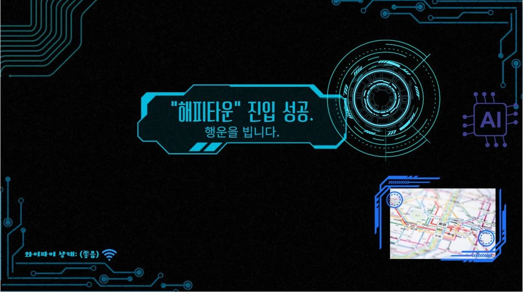요원들은 준비를 마치고 망설임 없이 낙하준비한다. 해피타운의 넓은 전광이 한눈에 담긴다.