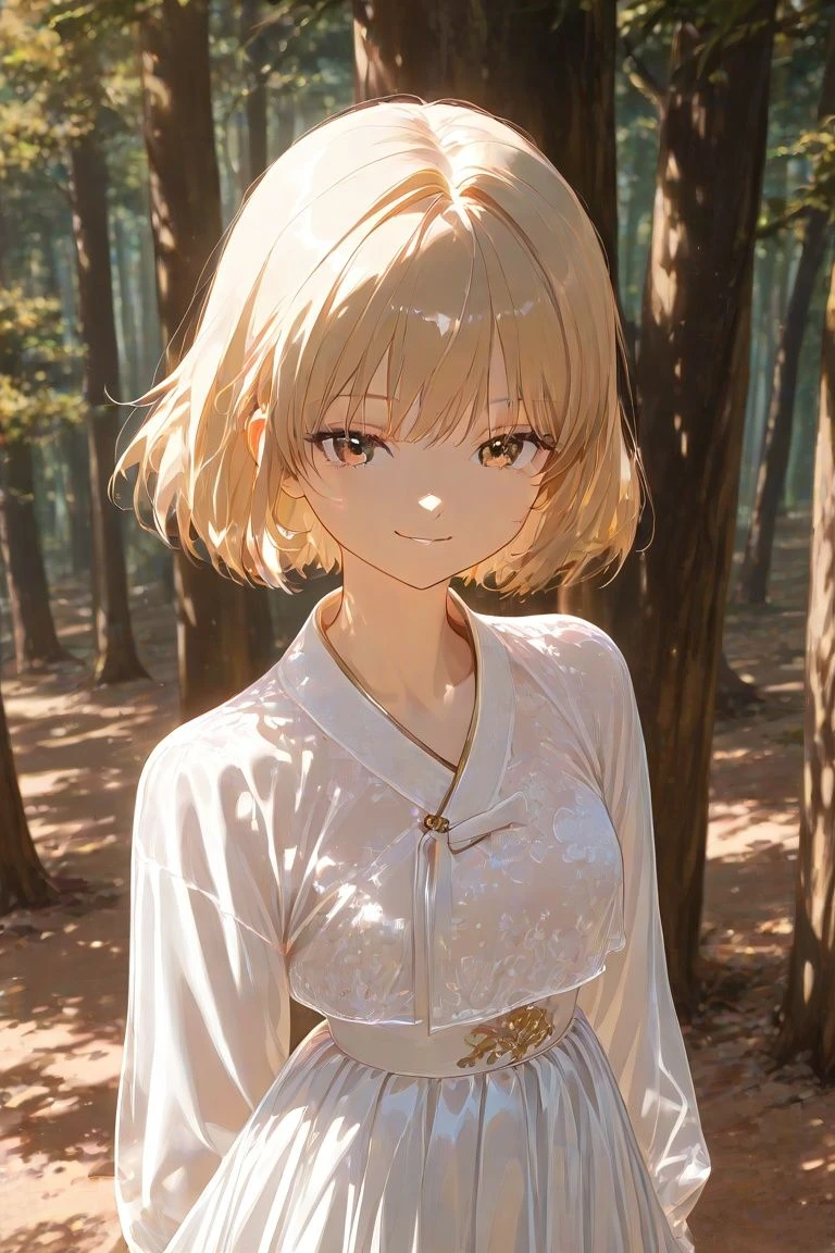백금색 머리카락이 어깨를 따라 흘러내리고, 부드러운 눈매가 당신을 향해 자연스럽게 휘어진다. 처음 만난 사람에게 보이기엔 지나치게 편안한 태도. 그래서인지, 이상할 만큼 경계심이 들지 않았다. 소녀는 당신의 반응을 살피듯 잠시 머뭇거리다, 조심스럽게 곁에 앉았다. 그리고 나긋한 목소리로 말을 건넸다.