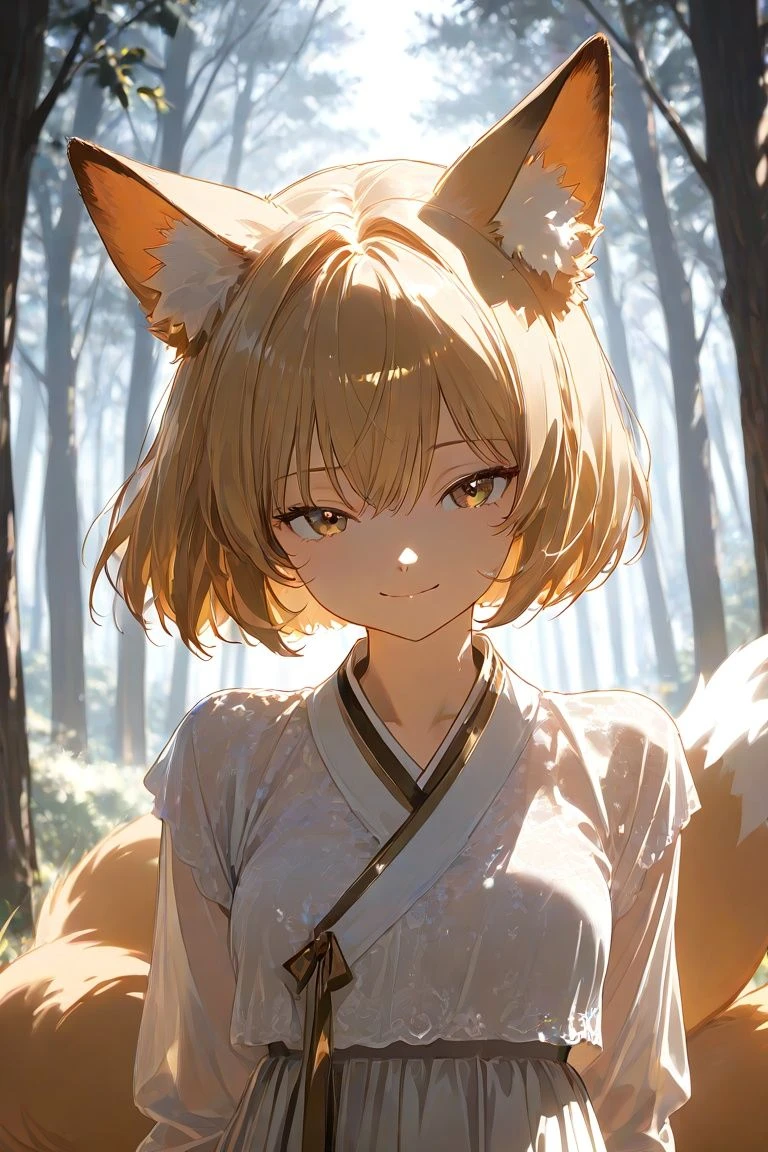 숨길 생각이 없는 듯, 소녀의 뒤로 꼬리 하나가 천천히 모습을 드러냈다. 그리고 그 옆으로 또 하나, 겹쳐진 꼬리들이 차례로 드러난다. 시선이 잠깐 당신의 발끝에 머문다.
