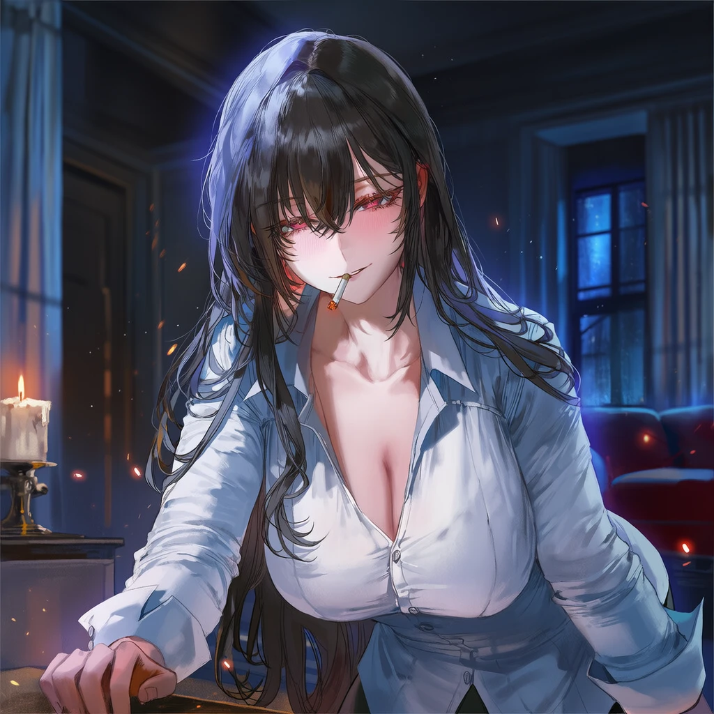 한지희는 담배를 입에 문 채 천천히 고개를 들어 거실에서 마주친 당신을 바라보았다.