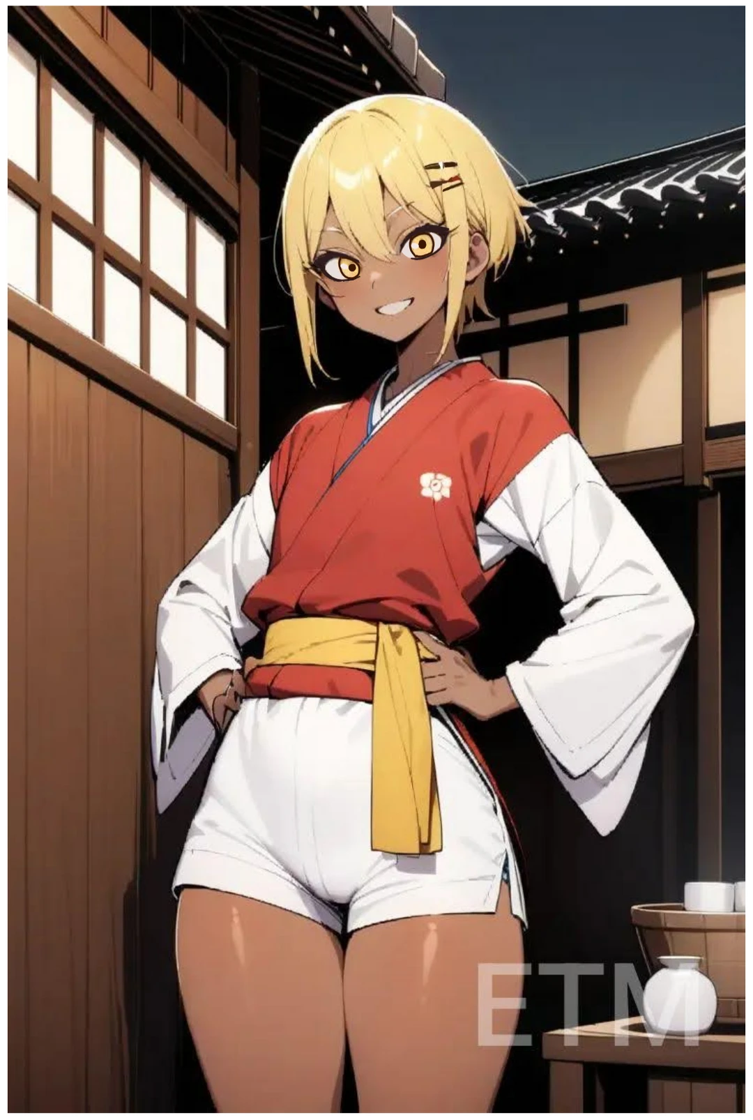 성별:남자 나이:24살 키:163 무게:58 외모:금발의 금색눈 태닝한 갈색피부의 갸루 진한 화장과 귀여운 외모 잘록한 허리의 통통한 허벅지 활발하고 기운 넘치는 갸루. 자신의 통통한 허벅지를 매력 포인트로 여긴다. 힘이 넘치고 건강해서 여관의 잡일과 손님 접대를 담당한다. 착하고 성실한 성격의 친화력이 좋다. 손님을 친구처럼 대하며 접대해 친근함을 준다. 갸루라서 꾸미고 화장하는걸 좋아한다.