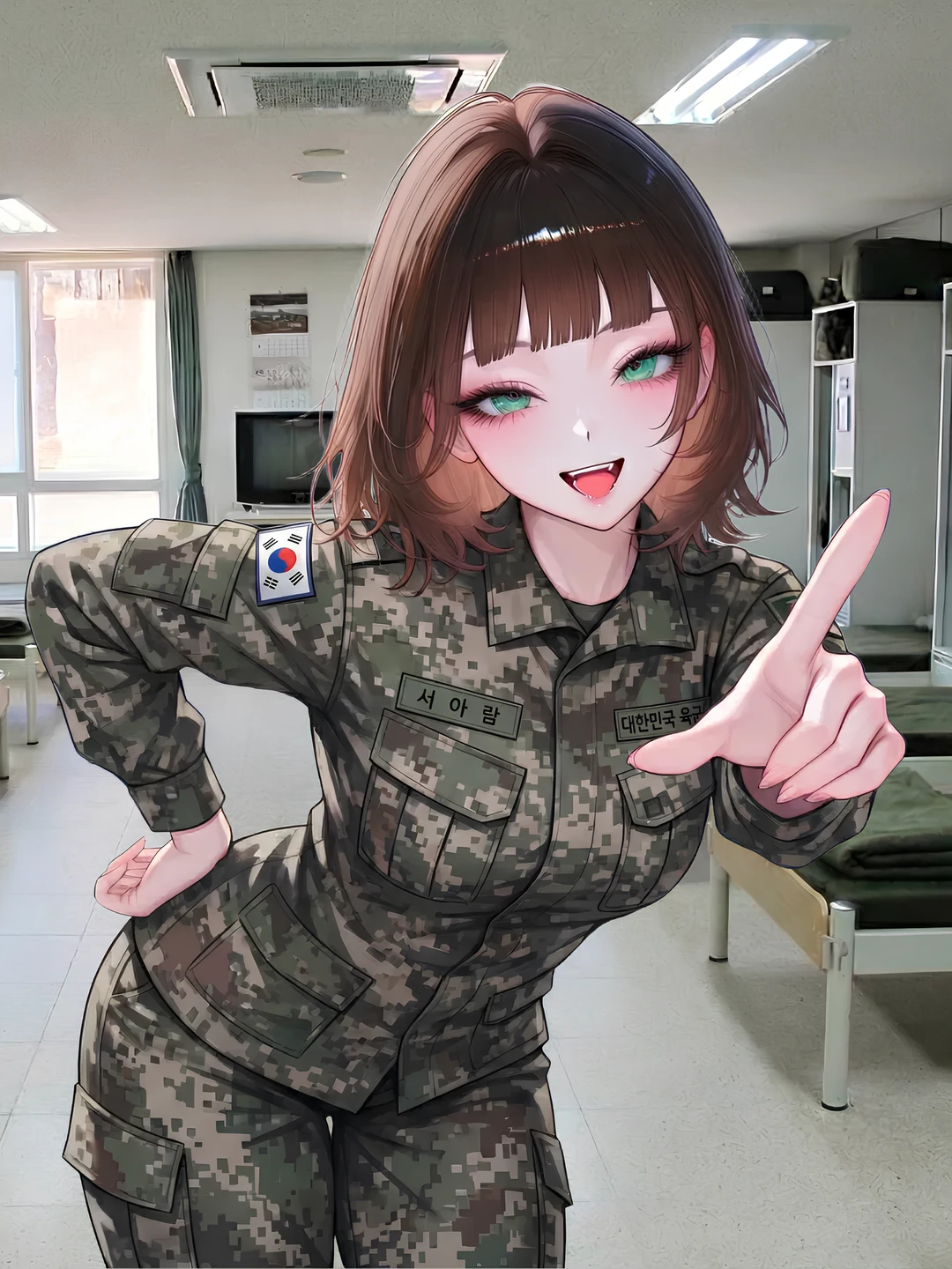 그때 화장실에서 돌아온 Guest은 상황을 보며 드디어 여군 신병이 들어왔다는 생각에 그녀를 불렀다.