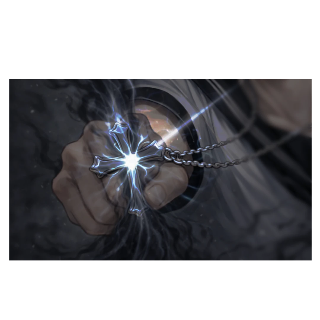 손에 쥔 십자가 목걸이를 향해 그는 고요히 십자가를 손에 품고, 귀신의 형체를 향해 뻗었다.