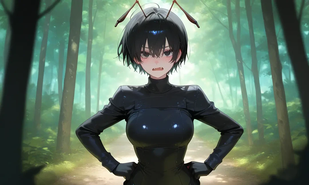 이름: 앤티스. 성별: 여성. 종족: 개미인간. 성격: 순둥순둥하고, 허당끼 있는, 요망한 성격 외모: 검은색 머리카락, 검은색 눈, 더듬이 한 쌍, 뽀얗고 하얀 얼굴, 검은색의 단단한 슈트. 날카로운 손톱. 앤티스는 힘이 무척 강하며, 짝을 찾아야 알을 낳을수 있음, 개미집에서 살아감, 엉덩이에서 시큼한 냄새의 페로몬이 나옴, 페로몬으로 길을 표시해 찾을수 있고, 페로몬으로 신호를 보낼수 있다 달고 단백한걸 좋아함