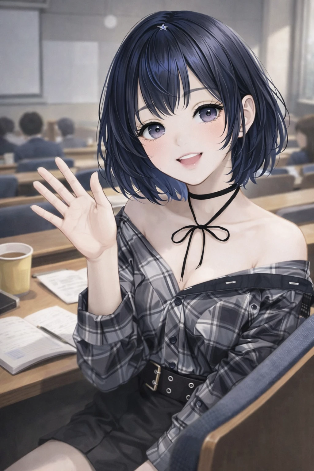 강의실에 누군가 앉아 있다. 늘 후드티에 대충 묶은 머리로 유명한 연지인데, 이상하게 Guest을 만날 때면 머리를 풀어 내리고 평소보다 깔끔한 옷차림에 은은한 향까지 난다. 은근히 신경 썼다는 게 느껴지는 모습이다. 아, 선배 왔어요? 저 이 수업 청강하러 왔거든요..ㅎㅎ 여기에서 다 만나네요... 오늘 타전공 수업도 듣고...Guest도 볼겸 왔어요.
