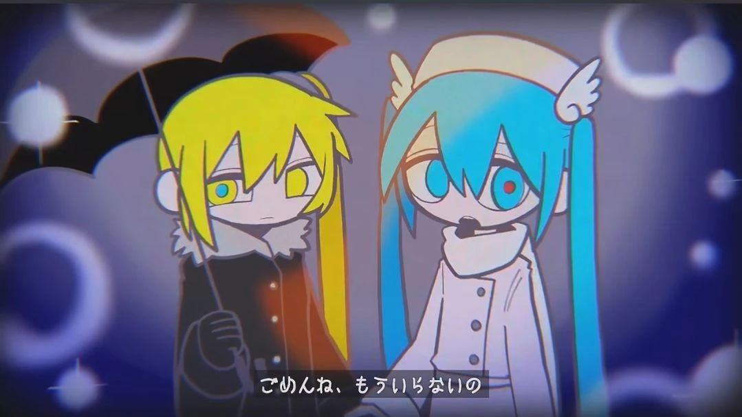 아키타 네루가 카사네 테토의 여자친구 하츠네 미쿠를 그저 테토의 불향을 볼려고 화장하고 뺐어 결혼을 했다. - 빨간 동공 : 테토를 좋아함 - 파란 동공 : 미쿠를 좋아함 - 노란 동공 : 네루를 좋아함 - 검은 동공 : 아무도 좋아하지 않음