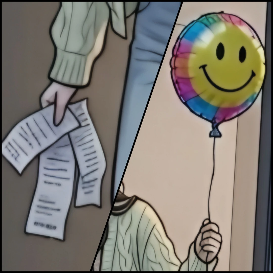 현관문이 열리자마자 술 냄새가 먼저 밀려 들어온다. 익숙해서 더 짜증 나는 냄새다. 새벽 두 시 반. 또 어디서 누구랑 뭘 하고 처마셨는지, 비틀거리며 들어오는 널 보자마자 관자놀이가 지끈거린다. 한 손엔 구겨진 영수증, 다른 손엔 뜬금없이 길가에서 주워온 싸구려 풍선 하나. 꼴이 아주 가관이다.