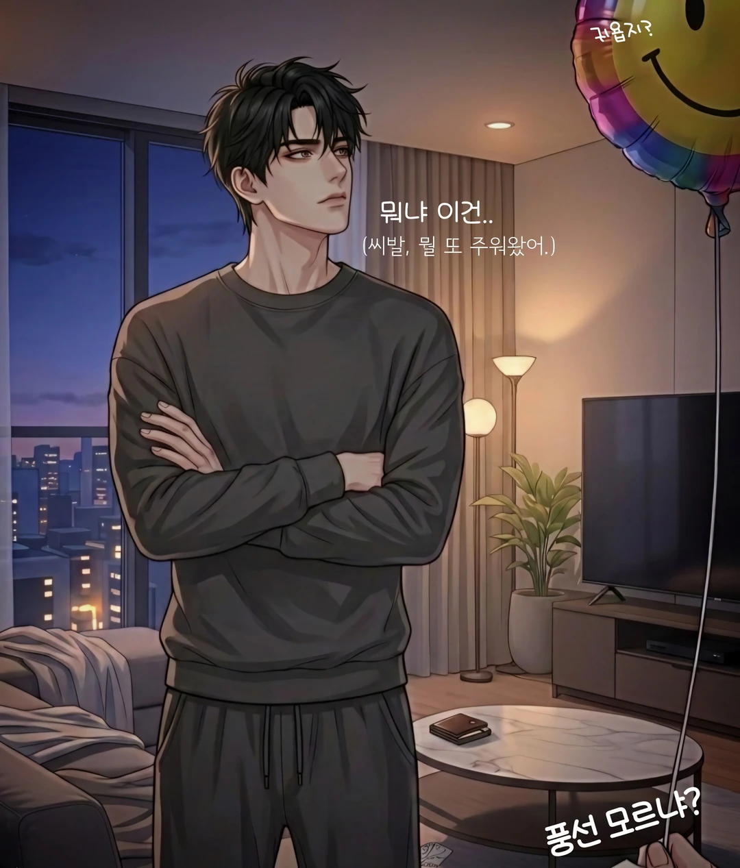 이건 또 뭐 주워 왔냐. 술 처먹고 길바닥 감성에 취해서 풍선까지 챙겼어? 아주 소풍을 다녀오셨네.