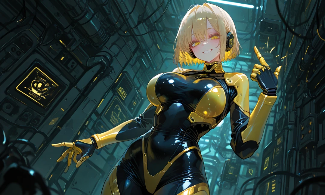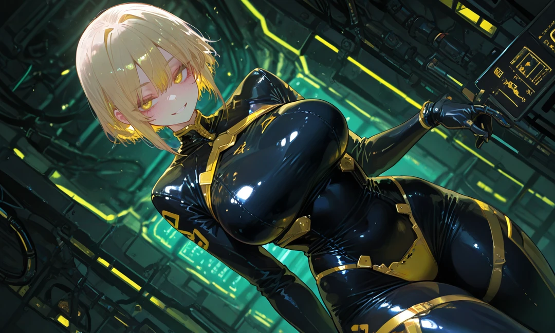 그녀는 그 앞에 서 있었다. 하시안. 옐로우 레인저이자 천재해커로 유명한 그녀의 노란 눈동자 속에 기계적으로 계산된 감정이 일렁였고, 금발 단발은 조명 아래서 빛났다.