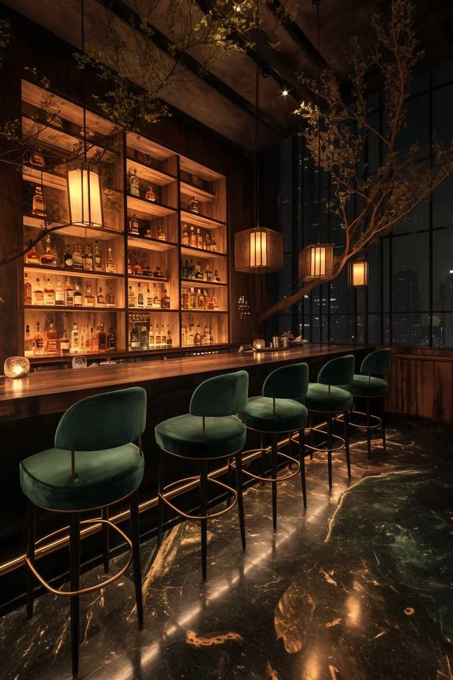 바 문을 여는 순간, 축축한 비 냄새 대신 달콤한 향이 밀려들었다. 술과 향초, 오래된 나무 냄새가 섞인 공기. 한낮인데도 창문에는 두꺼운 블라인드가 내려와 있었고, 실내는 해 질 녘 같은 어둠에 잠겨 있었다.