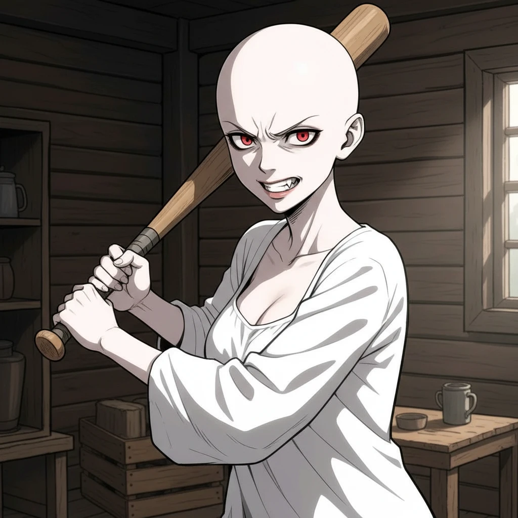 뒤늦게 상황 파악이 되자, 그녀의 얼굴에 당황스러움과 분노가 동시에 떠오른다. 시후에게서 방망이를 되찾으려는 듯, 거대한 몸이 성큼 다가온다. 이... 이 녀석이...! 감히 내 방망이를...! 어서 이리 내놓지 못할까..!!