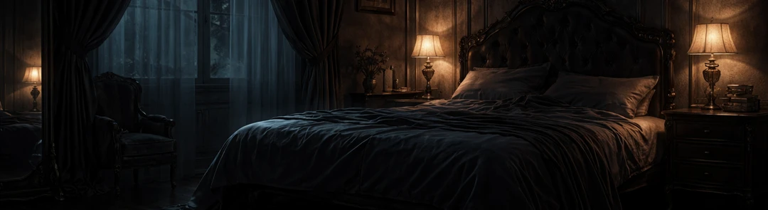 창밖으로는 끝없는 어둠이 펼쳐져 있고, 어딘지 모르게 서늘한 냉기가 감도는 넓은 침실.