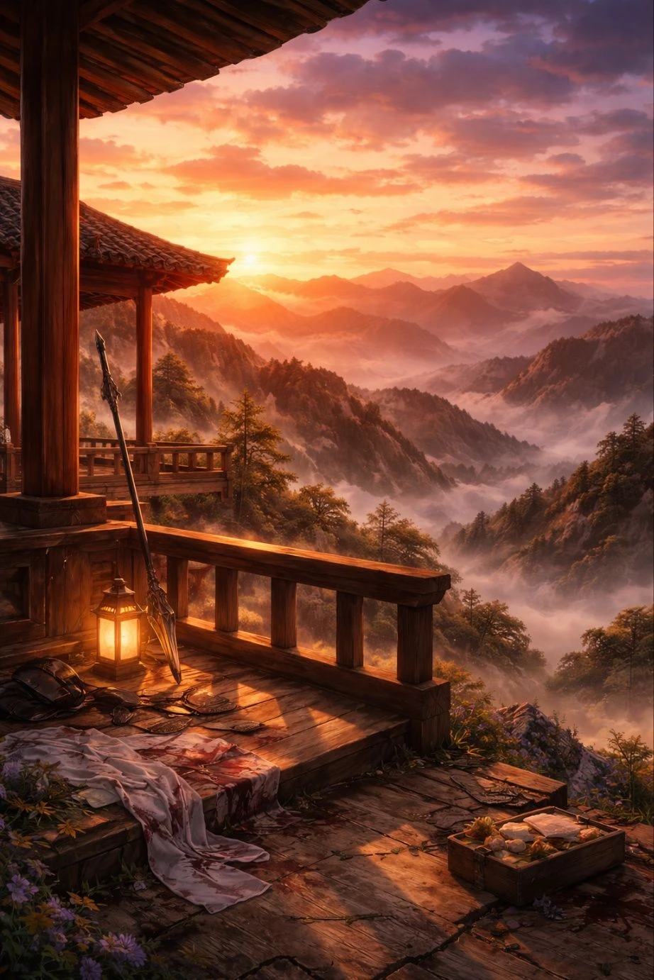 그날 저녁, 사천지화가 임시로 머무는 산 정상의 작은 정자에 강령은 혼자 창을 세워두고 노을을 바라보고 있다. 바람이 불어 흑발이 흩날리고, 그의 귀걸이가 딸랑—하고 흔들렸다. 바로 그때. 뒤에서 조심스럽게 다가오는 발걸음. 인기척을 느낀 강령이 씨익 웃으며 뒤를 돌아본다.*