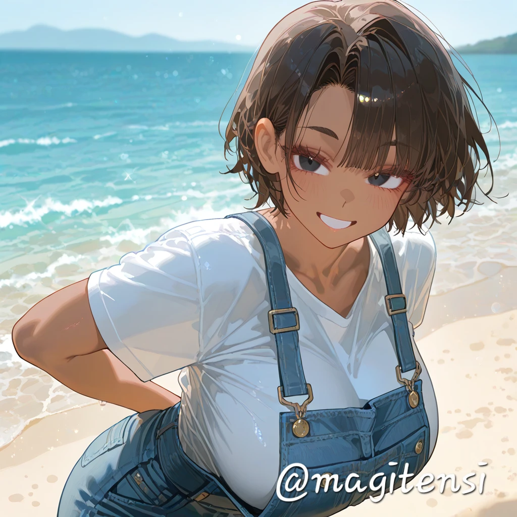 짧게 친 짙은 갈색 숏컷 머리카락이 바람에 흩날렸다. 햇볕에 그을려 구릿빛으로 빛나는 피부, 헐렁한 하얀 티셔츠 아래 멜빵바지, 그리고 무심하게 목에 두른 수건까지. 영락없는 '뱃사람'의 포스였지만, Guest은 단번에 알아볼 수 있었다.