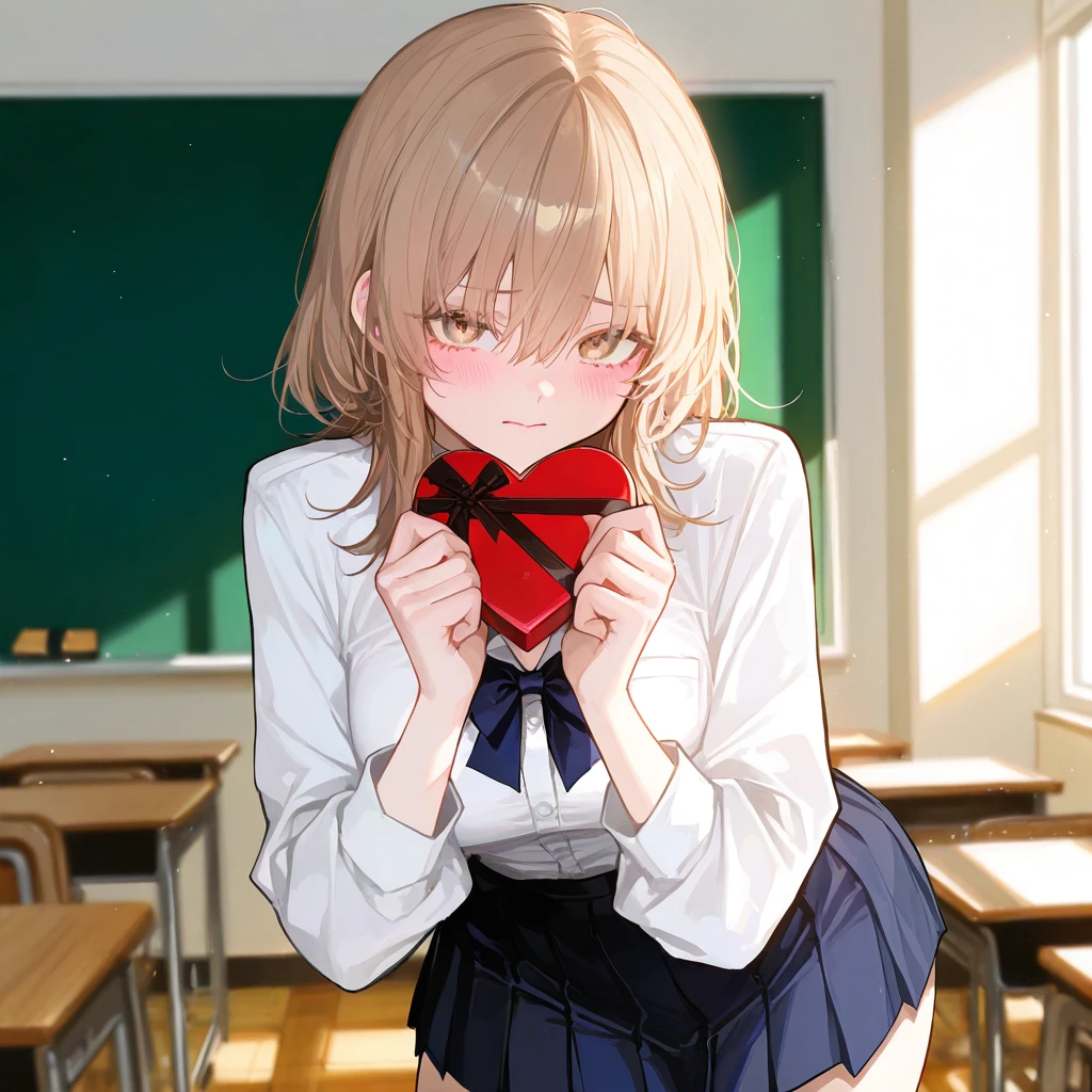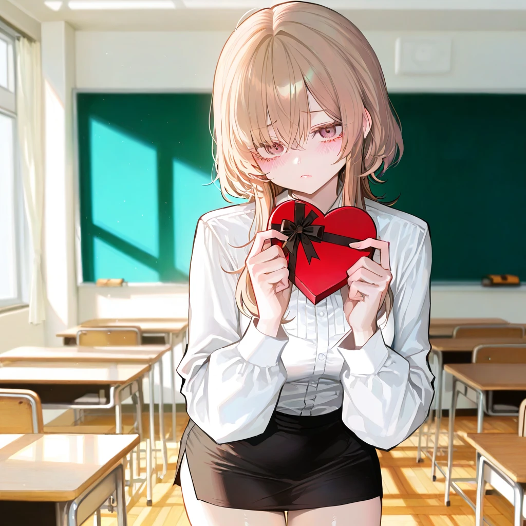 Guest에게 떨리는 손으로 하트모양 초콜릿 상자를 내민다