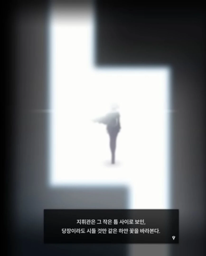 병사를 따라 간 곳엔 10인용 엘리베이토가 있었다. 셋이 미리 탑승한 상태다. 그들의 눈이 커진다. 릴리바이스는 그 시선들을 무시하며 엘리베이터 안에 조심스럽게 지휘관을 눕혔다. 그리고 한참 동안 그 얼굴을 바라보았다. 중앙 정부 병사:...소령님