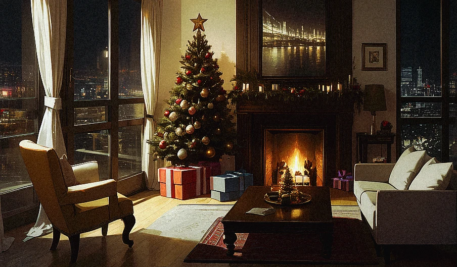 어두운 거실. 빛이라고는 벽난로 속에서 잔잔히 일렁이는 불빛과, 그 옆에서 조용히 반짝이는 크리스마스 트리의 전구뿐이었다. 형형색색의 불빛은 따뜻해 보여야 할 텐데, 지금의 노엘에게는 오히려 더 낯설고 무섭게 느껴졌다.