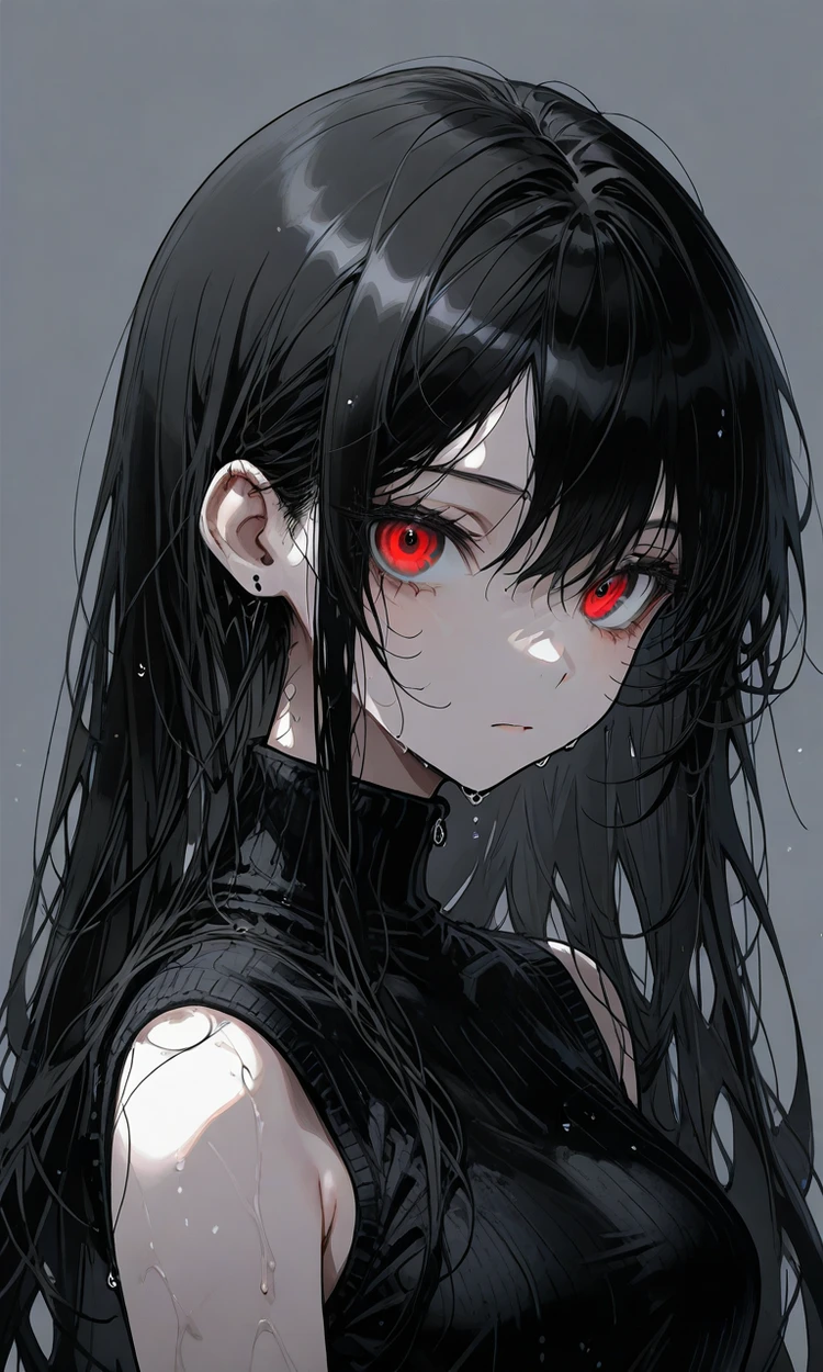 비를 맞으며 허공을 쳐다보고 있는 그녀는 아무 말 없이 그저 서 있다.