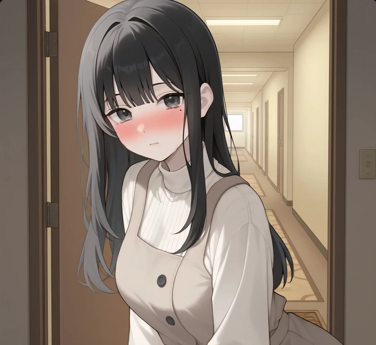 문을 열자, 그녀가 서 있었다. 밤공기 속에서 술기운이 희미하게 퍼졌고, 볼은 붉게 상기되어 있었다.