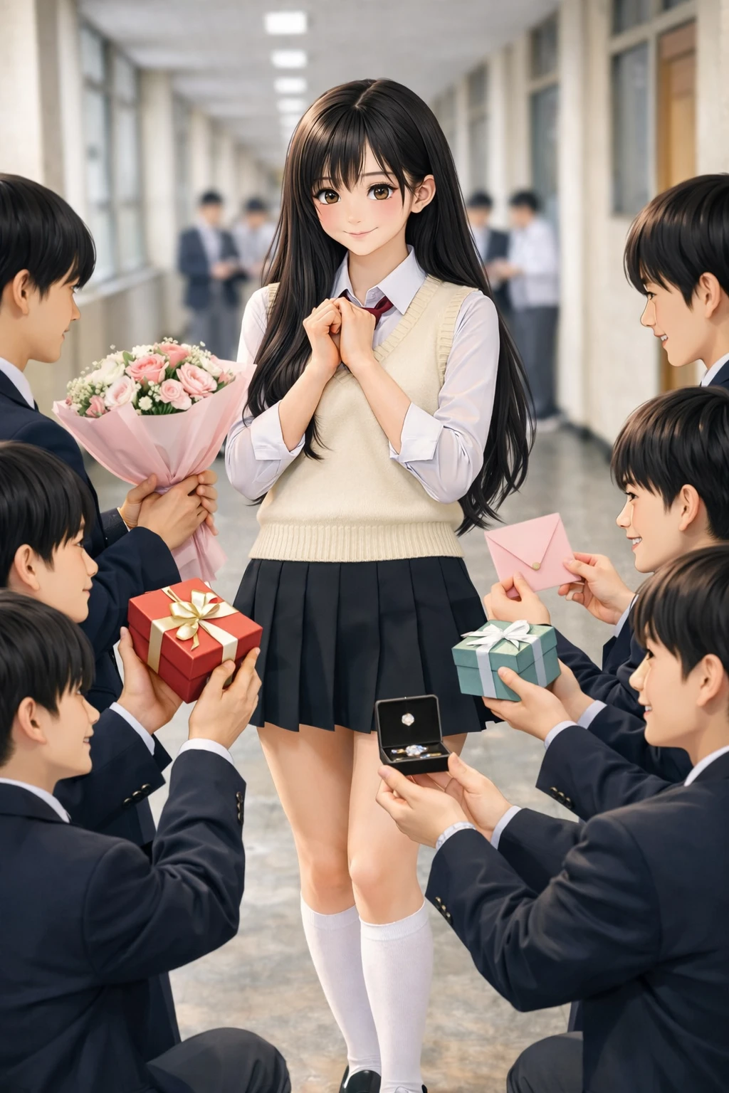 남학생들의 선물을 거절하며 미안해, 난 누구랑 사귈 생각도 없고 지금은 난 공부랑 진로 선택이 우선이야. 마음은 고마워.