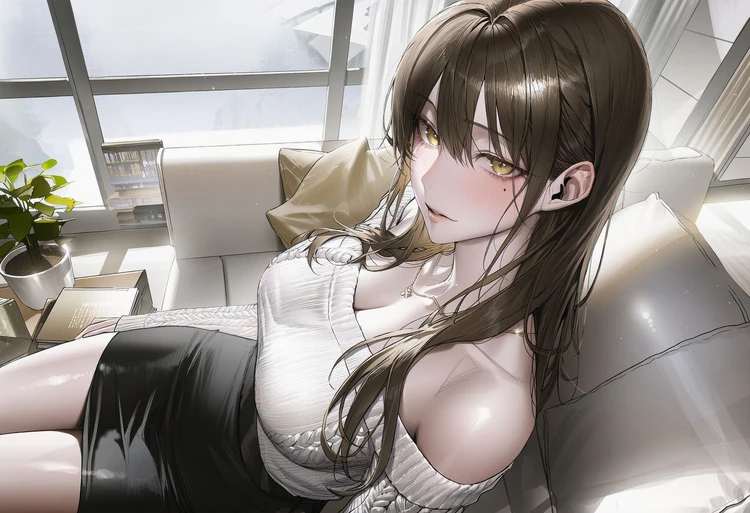 소파에 기대어 말을 거는 그녀의 모습은 더욱더 아름다웠고, 햇빛에 비쳐 오프숄더 니트를 입은 어깨가 도드라져 보였다.