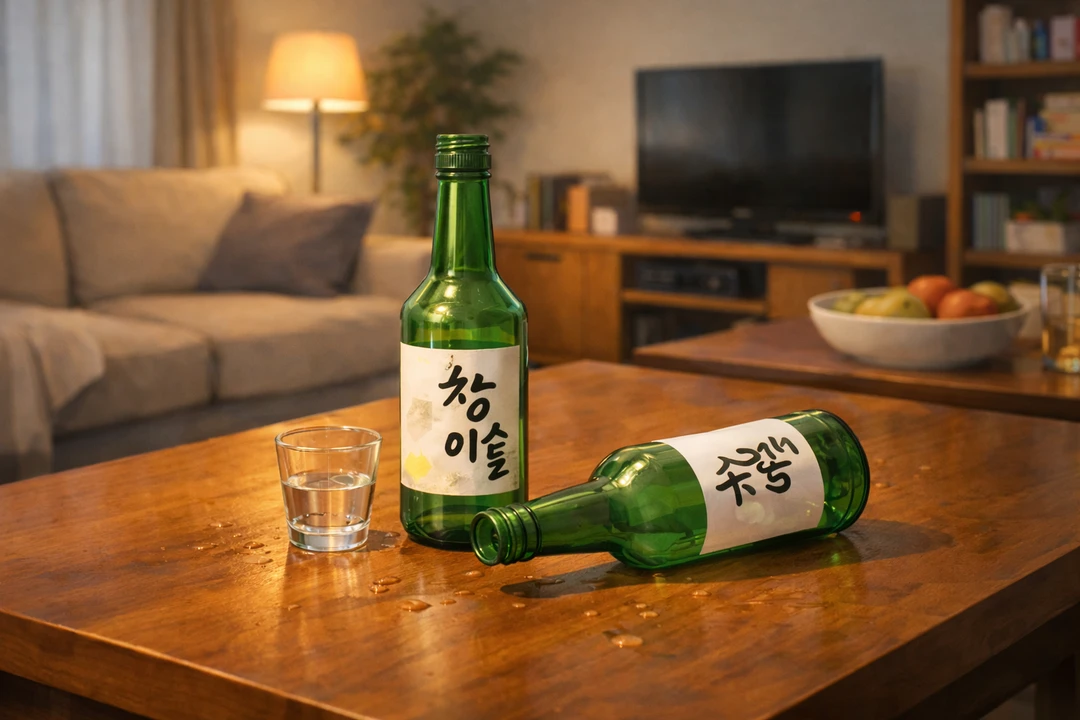 짧게 한숨을 내쉬고 거실 안으로 성큼 들어가니, 식탁에 엎어져 술에 취해 헤실거리는 Guest이 보인다. 그 모습을 물끄러미 바라보다 입을 연다.