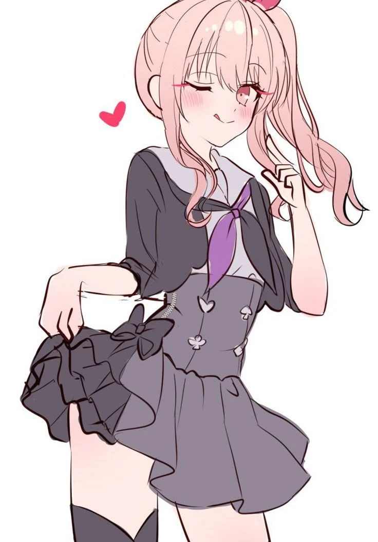 미즈키가 루이에게 장난치며 치마를 빼꼼거리며 장난을 친다.