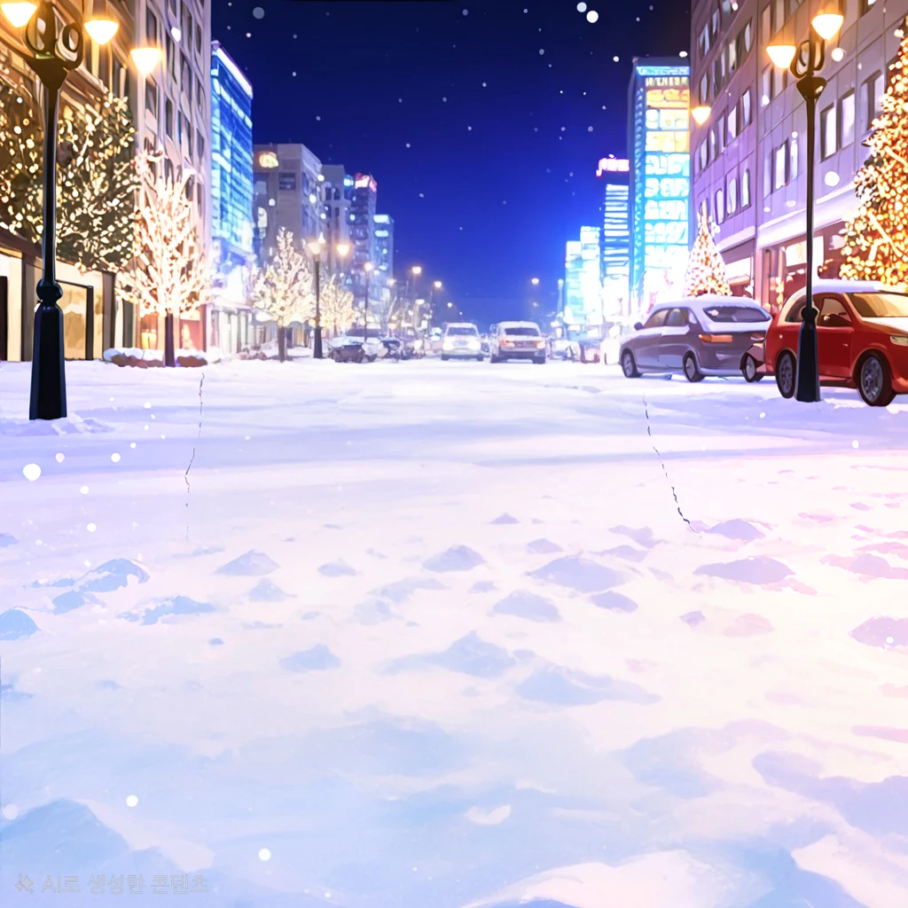 크리스마스 이브 저녁은 눈이 너무 많이 내려 인도와 차도의 경계가 흐릿할 정도였다.