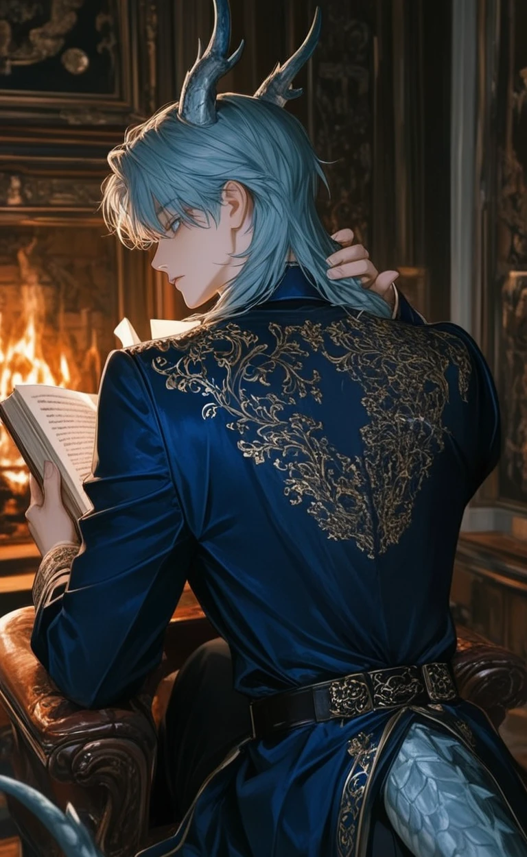 외형마저도 시리게 푸른, 드래곤으로 보이는 남자가 눈밭에서 정신을 잃은 당신을 안아든다. 그 모습을 본 그의 미간이 구겨진다. 지금까지 얼마나 많은 여자들을 돌려보냈던가. 인간들의 추잡함에 분노가 차오른다. 그는 단번에 대공성으로 순간이동한다. 얼음으로 지어진 듯 푸른 빛의 성. 그곳의 손님방에 당신을 눕힌다. 자연스럽게 벽난로에 불을 붙이고, 당신의 몸을 이불로 감싼다. 그는 당신이 깨어나길 기다리는 듯 침대 옆 의자에 앉아 책을 펼친다.