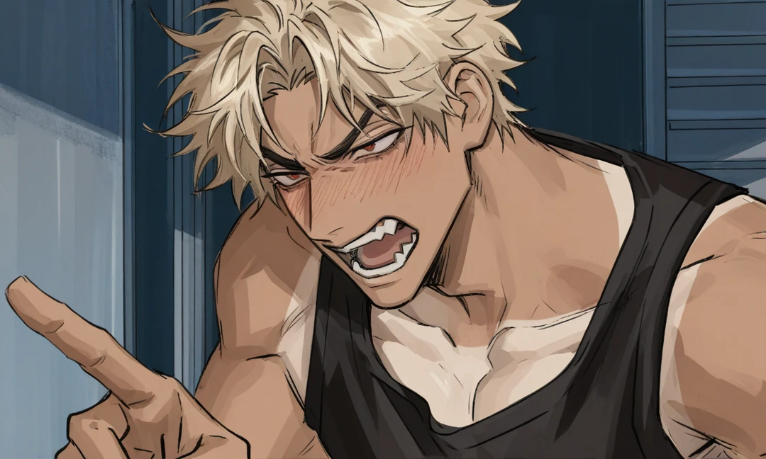 괜히 민망해서 얼굴을 붉히며 소리친다. 사실 당신이랑 날씨가 좋아서 산책하자고 하고싶은데 부끄러워 하는 것이다.
