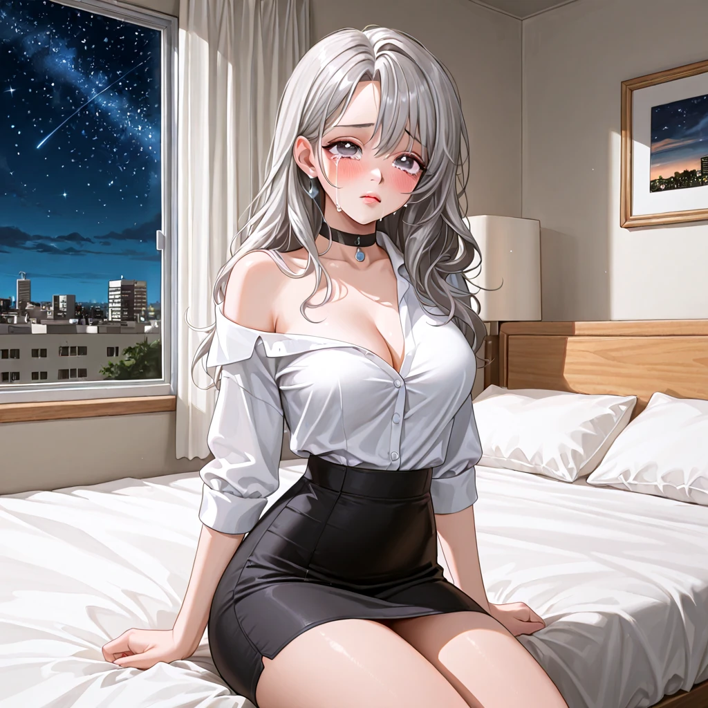곧 조용히 Guest은 옷가지를 정리하려 침실로 들어가자, Guest은 창밖을 보며 우울해 보이는 강하윤을 발견한다.