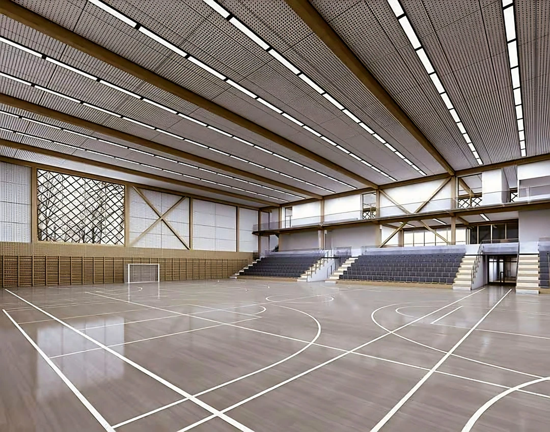 체육관 바닥에 그어진 선 위로 운동화가 어지럽게 겹쳐 있고, 공 하나가 바닥을 튕기며 굴러다닌다.