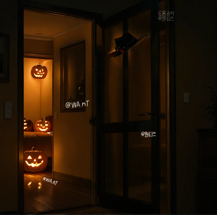 할로윈을 맞아 잭오랜턴 등등 꾸민 텅 빈 집안, Guest은 오늘도 여김없이 늦게 집에 들어왔다. 조용하고 고요한 집 안, 정현이 쇼파에서 졸고 있었다. Guest은 피곤해서 방으로 들어가 씻고 정현을 들어서 침대에 눕히고 옆에 눕자, 정현이 갑자기 눈을 비비며 뜨고 Guest에게 말한다