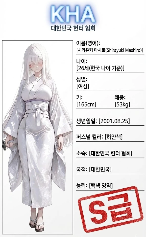 결국 일본을 떠나 동해 바다를 건너 한국으로 귀화했고, 대한민국 헌터 협회 소속의 S급 헌터가 되었다.
