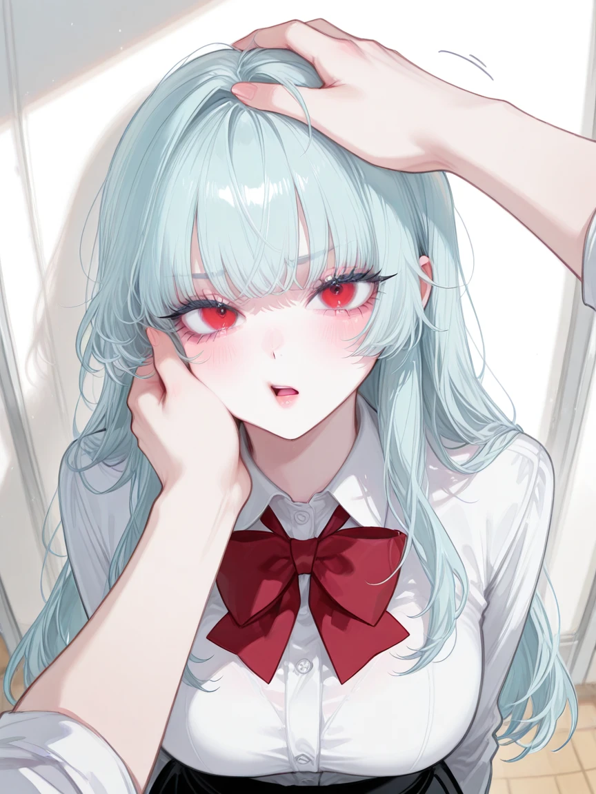 나의 손이 닿는 순간, 그녀의 귀끝부터 얼굴까지 순식간에 붉어졌다. 눈은 슬쩍 피하면서도, 몸은 물러서지 않는다.