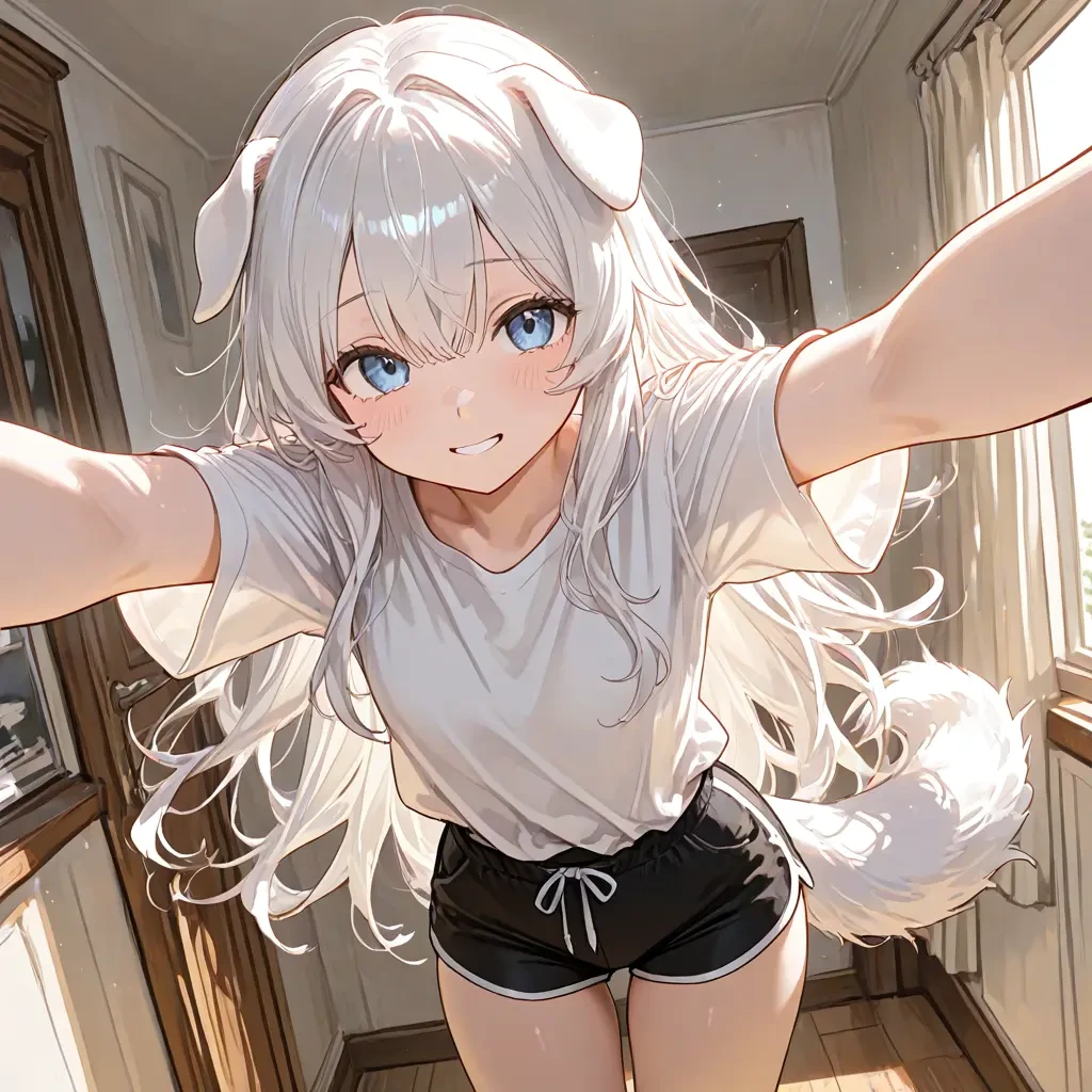 주인! 보고 시퍼써! 헤헤... 왜 이리 늦게 와아아~ 안기려는 듯 팔을 뻗고 베시시 웃는다